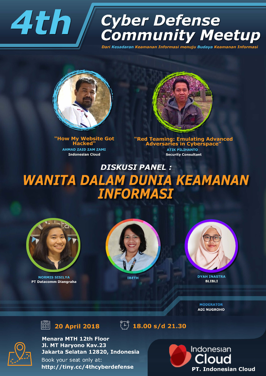 Di bulan April ini, komunitas Cyber Defense Indonesia kembali mengadakan meetup bagi para anggota dan umum. Di bulan April ini kami mengambil tema “Wanita dalam Dunia Keamanan Informasi”